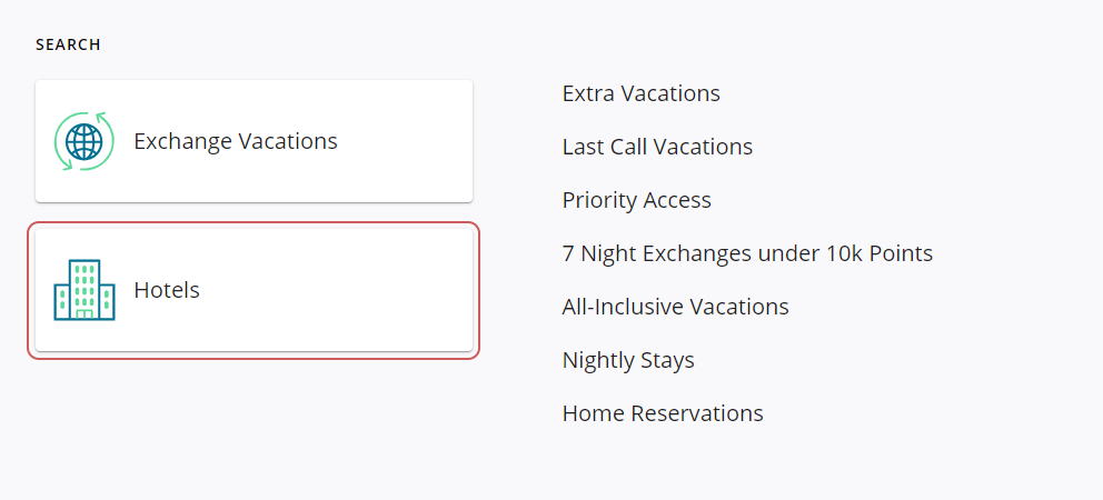 Alternatively, you can navigate to rci-travel.com and press "Search Hotels"; or click here.